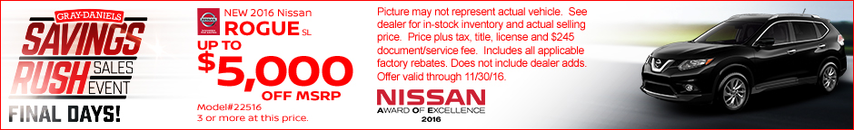 0% APR for 60 Months Available on All New Nissan Rogues, Murano, & Pathfinders Shop Selection
