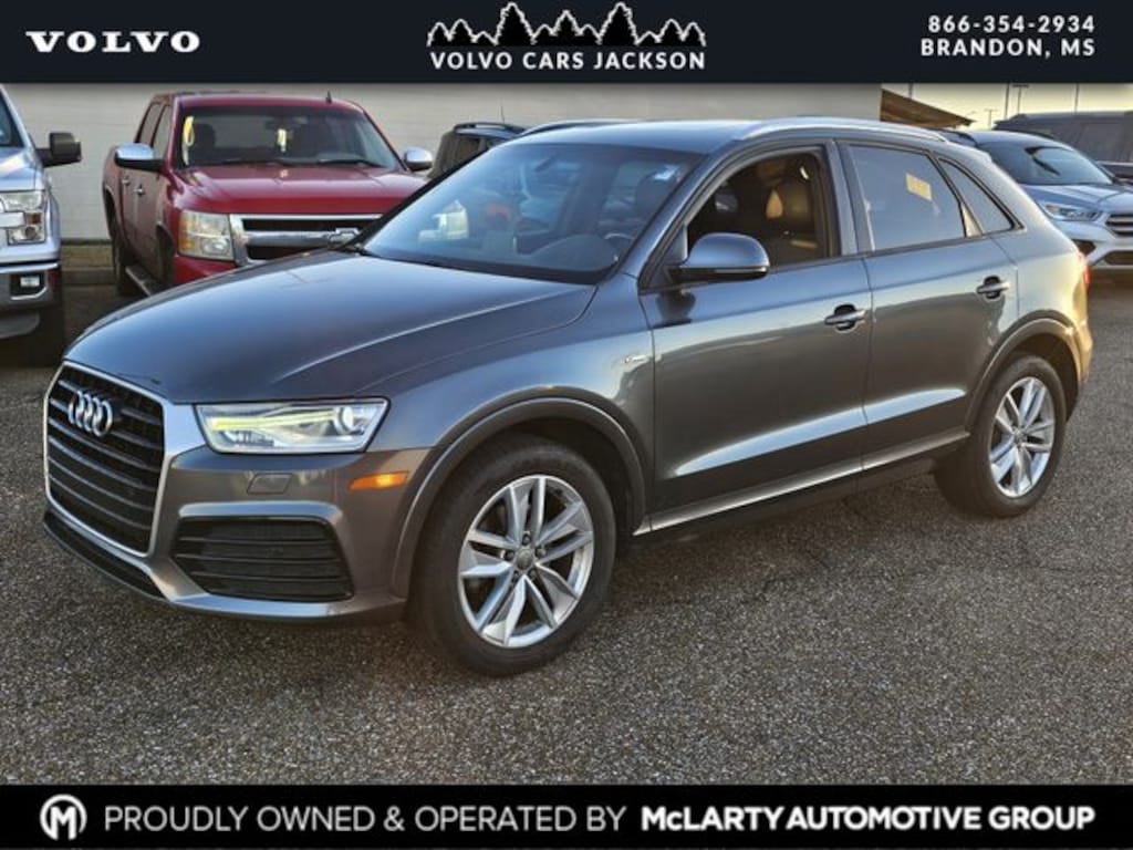 Daytona Gray Pearl Effect 2018 Audi Q3 2.0T Premium FrontTrak FrontTrak 6-Speed Automatic with Tiptronic 2.0L 4-Cylinder TFSI Backup Camera, Bluetooth, 4-Wheel Disc Brakes, ABS brakes, AM/FM radio: SiriusXM, Axle Ratio: TBD, Brake assist, Bumpers: body-color, CD player, Delay-off headlights, Dual front impact airbags, Dual front side impact airbags, Electronic Stability Control, Exterior Parking Camera Rear, Four wheel independent suspension, Front anti-roll bar, Front fog lights, Fully automatic headlights, Heated door mirrors, Heated front seats, High intensity discharge headlights: Xenon plus, Illuminated entry, Leather Seating Surfaces, Leather Shift Knob, Leather steering wheel, Low tire pressure warning, Occupant sensing airbag, Overhead airbag, Panic alarm, Power door mirrors, Power driver seat, Power moonroof, Power passenger seat, Rain sensing wipers, Rear anti-roll bar, Rear fog lights, Rear window wiper, Remote keyless entry, Security system, Speed control, Speed-sensing steering, Spoiler, Steering wheel mounted audio controls, Telescoping steering wheel, Tilt steering wheel, Traction control, Turn signal indicator mirrors, Variably intermittent wipers.