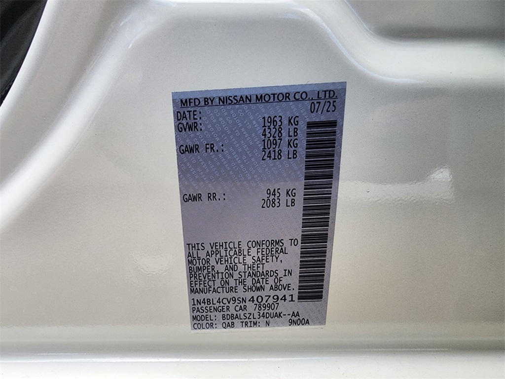 Price includes: $500 - Nissan Conditional Offer - College Graduate Discount. Exp. 01/05/2026 2025 Nissan Altima Pearl White Tricoat 4D Sedan 2.5 SR