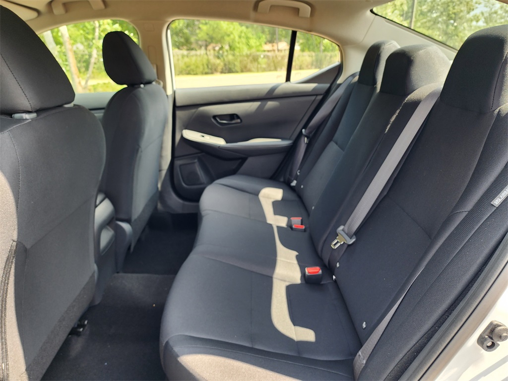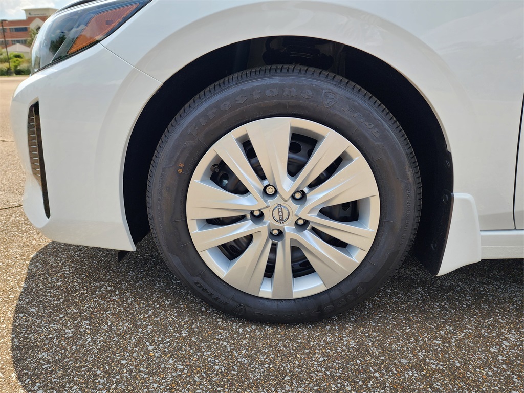 S, CVT with Xtronic, Charcoal Cloth, 4 Speakers, ABS brakes, Air Conditioning, AM/FM radio, Auto High-beam Headlights, Blind Spot Warning, Body Colored Splash Guards (4-Piece), Brake assist, Bumpers: body-color, Clear Rear Bumper Protector, Cloth Seat Trim, Delay-off headlights, Driver door bin, Driver vanity mirror, Dual front impact airbags, Dual front side impact airbags, Electronic Stability Control, Four wheel independent suspension, Front anti-roll bar, Front Bucket Seats, Front Center Armrest, Front reading lights, Fully automatic headlights, Illuminated entry, Knee airbag, Low tire pressure warning, Nissan USB Charging Cable Set, NissanConnect featuring Apple CarPlay and Android Auto, Occupant sensing airbag, Outside temperature display, Overhead airbag, Overhead console, Panic alarm, Passenger door bin, Passenger vanity mirror, Power door mirrors, Power steering, Power windows, Radio data system, Rear anti-roll bar, Rear Parking Sensors, Rear side impact airbag, Rear window defroster, Remote keyless entry, Speed control, Speed-sensing steering, Split folding rear seat, Steering wheel mounted audio controls, Tachometer, Telescoping steering wheel, Tilt steering wheel, Traction control, Trip computer, Variably intermittent wipers. 30/40 City/Highway MPG