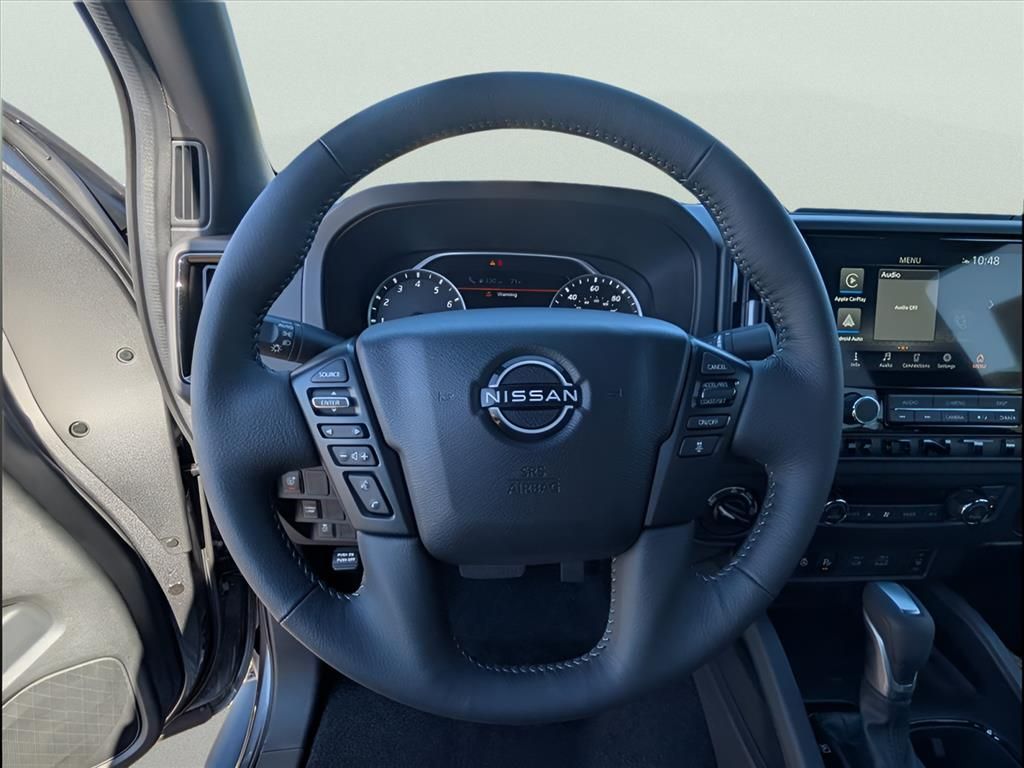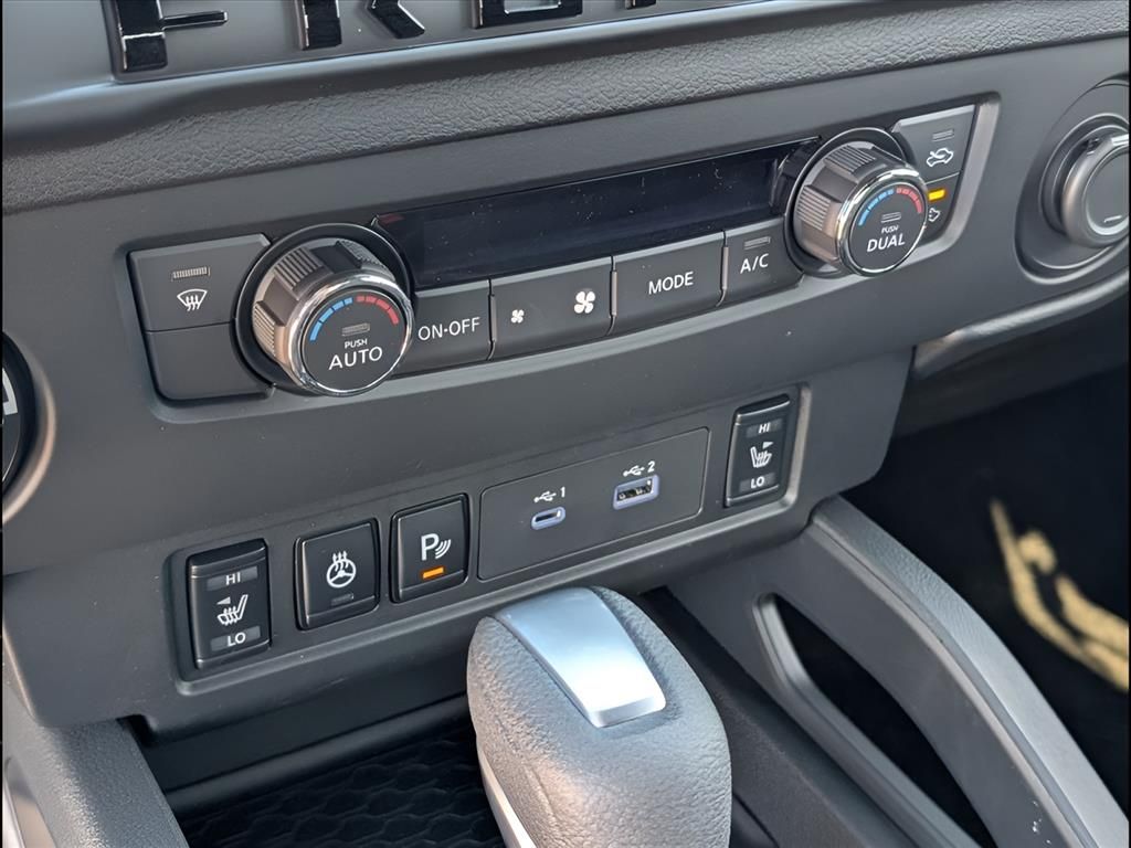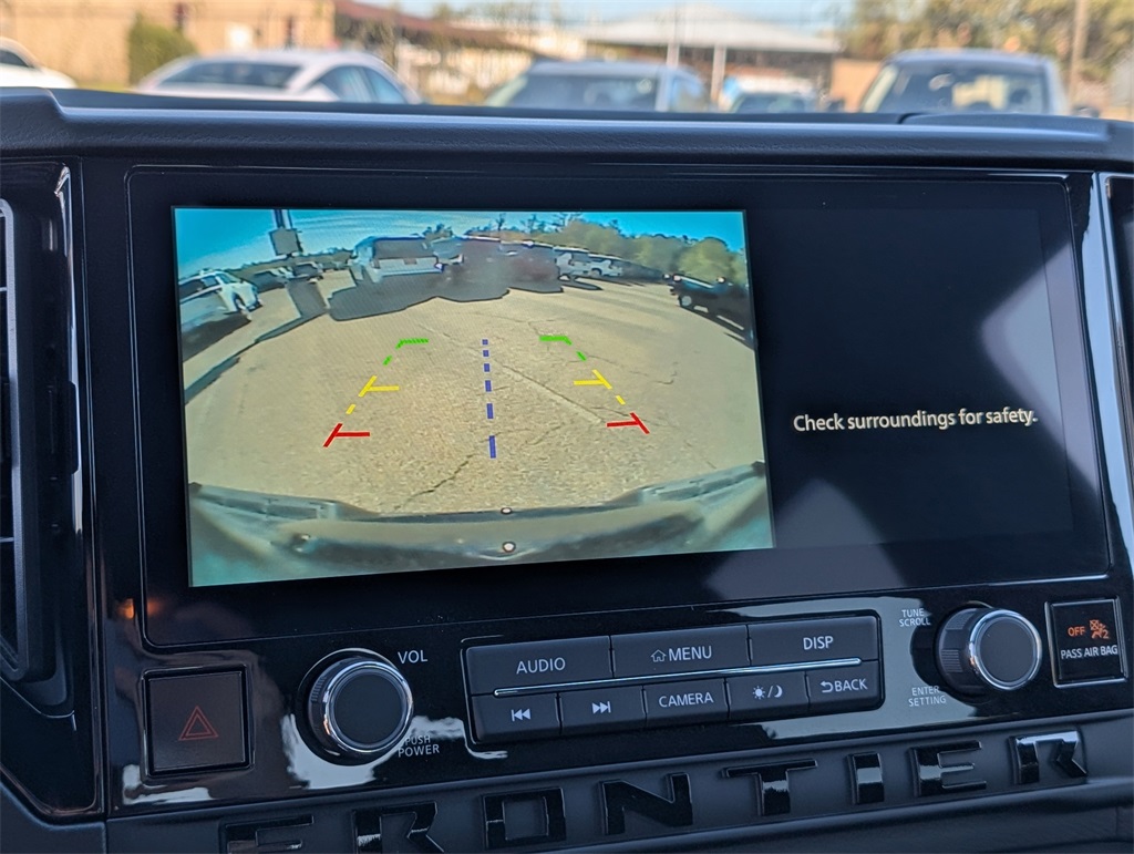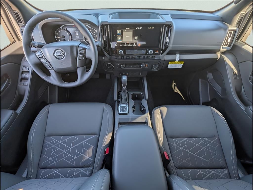 SV Package, 4WD, 3.692 Axle Ratio, 4-Wheel Disc Brakes, 6 Speakers, ABS brakes, Air Conditioning, All Season Floor Mats, All-Weather Content Package, Alloy wheels, AM/FM radio: SiriusXM, Anti-whiplash front head restraints, Auto High-beam Headlights, Blind Spot Warning, Brake assist, Bumpers: body-color, Dark Armor Package, Dark FRONTIER Tailgate Lettering, Dark Grill Surround/Mesh/Inner Fascia, Dark Mirror Caps, Delay-off headlights, Door Scuff Protection, Driver door bin, Driver vanity mirror, Dual front impact airbags, Dual front side impact airbags, Electronic Stability Control, Emergency communication system, Front anti-roll bar, Front Bucket Seats, Front Center Armrest, Front reading lights, Front wheel independent suspension, Fully automatic headlights, Heated Front Seats, Heated Leather Steering Wheel, HVAC - Dual-Zone Front Auto A/C, Illuminated entry, Knee airbag, Low tire pressure warning, Occupant sensing airbag, Overhead airbag, Overhead console, Panic alarm, Passenger door bin, Passenger vanity mirror, Power door mirrors, Power driver seat, Power steering, Power windows, Premium Cloth Seat Trim, Radio data system, Radio: SXM/AM/FM/AUX/USB Audio System, Rear anti-roll bar, Rear seat center armrest, Rear side impact airbag, Rear step bumper, Remote Engine Starter, Remote keyless entry, Security system, Speed control, Speed-sensing steering, Splash Guards, Split folding rear seat, Steering wheel mounted audio controls, Tachometer, Telescoping steering wheel, Tilt steering wheel, Tow Package, Tow/Haul Mode Switch, Traction control, Trip computer, USB Charging Cable Kit, Variably intermittent wipers, Voltmeter, Wheels: 17" Dark, Wireless Apple CarPlay/Wireless Android Auto.
