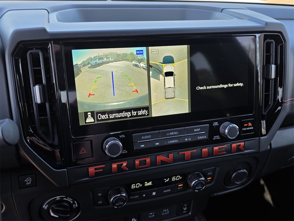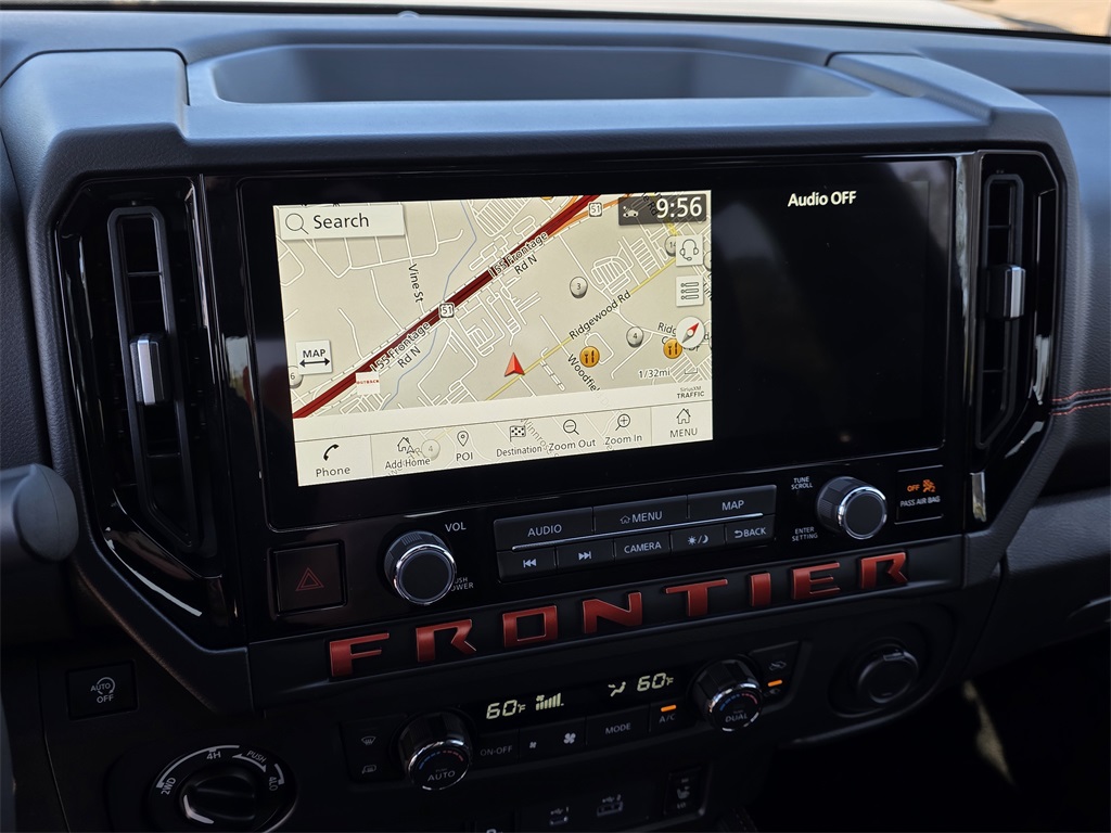 4WD, 120V Power Outlet in Bed, 120V Power Outlet in Rear Center Console, 17" Painted Alloy Wheels, 3.692 Axle Ratio, 4-Wheel Disc Brakes, 6 Speakers, ABS brakes, Air Conditioning, Alloy wheels, AM/FM radio: SiriusXM, Anti-whiplash front head restraints, Auto High-beam Headlights, Auto-Dimming Mirror, Auto-Tilt & Slide Sunroof w/Manual Shade, Automatic temperature control, Bed Under-Rail Lighting, Blind Spot Warning, Brake assist, Bumpers: body-color, Delay-off headlights, Driver door bin, Driver vanity mirror, Dual front impact airbags, Dual front side impact airbags, Electronic Stability Control, Emergency communication system, Essentials Kit, Fender Premium Audio System w/10 Speakers, Front anti-roll bar, Front Bucket Seats, Front Center Armrest, Front dual zone A/C, Front fog lights, Front reading lights, Front wheel independent suspension, Fully automatic headlights, Heated Front Bucket Seats, Heated Outside Mirrors, HomeLink UGDO, Illuminated entry, Intelligent Around View Monitor (I-AVM), Knee airbag, Leather Seat Trim, Leather steering wheel, Low tire pressure warning, Mud Flaps, Nissan Door-to-Door Navigation, Occupant sensing airbag, Overhead airbag, Overhead console, Panic alarm, Partial Under-Seat Storage Delete, Passenger door bin, Passenger vanity mirror, Power door mirrors, Power driver seat, Power passenger seat, Power steering, Power windows, Premium Paint, PRO Embroidered Premium Cloth Seat Trim, PRO Premium Package, PRO-4X Convenience Package, Radio data system, Radio: SXM/AM/FM/AUX/USB Audio System, Rear anti-roll bar, Rear seat center armrest, Rear side impact airbag, Rear step bumper, Remote keyless entry, Security system, Speed control, Speed-sensing steering, Split folding rear seat, Spray-In Bedliner, Steering wheel mounted audio controls, Tachometer, Telescoping steering wheel, Tilt steering wheel, Traction control, Traffic Sign Recognition (TSR), Trailer Hitch w/Wiring Harness, Trip computer, USB Charging Cable Kit, Utili-Track System, Variably intermittent wipers, Voltmeter, Wireless Apple CarPlay/Wireless Android Auto, Wireless Charging for Personal Devices.