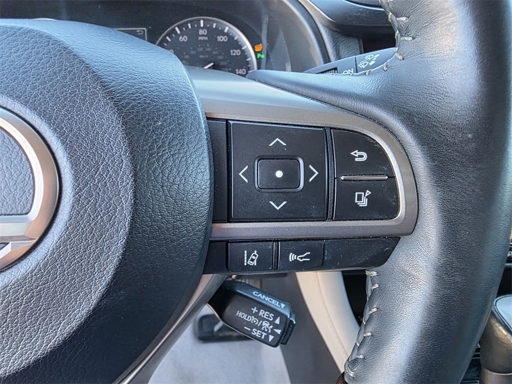 Black w/F Sport Leather, 3.329 Axle Ratio, 4-Wheel Disc Brakes, 9 Speakers, ABS brakes, Active Cruise Control, Air Conditioning, Alloy wheels, AM/FM radio: SiriusXM, Anti-whiplash front head restraints, Auto High-beam Headlights, Auto-dimming Rear-View mirror, Automatic temperature control, Backup Monitor, Brake assist, Bumpers: body-color, CD player, Compass, Delay-off headlights, Driver door bin, Driver vanity mirror, Dual front impact airbags, Dual front side impact airbags, Electronic Stability Control, Exterior Parking Camera Rear, Four wheel independent suspension, Front anti-roll bar, Front Bucket Seats, Front Center Armrest, Front dual zone A/C, Front fog lights, Front reading lights, Fully automatic headlights, Garage door transmitter: HomeLink, Heated door mirrors, Illuminated entry, Knee airbag, Leather Shift Knob, Leather steering wheel, Low tire pressure warning, NuLuxe Seat Trim, Occupant sensing airbag, Outside temperature display, Overhead airbag, Overhead console, Panic alarm, Passenger door bin, Passenger vanity mirror, Power door mirrors, Power driver seat, Power Liftgate, Power passenger seat, Power steering, Power windows, Radio data system, Radio: AM/FM/CD Lexus Display Audio, Rain sensing wipers, Rear anti-roll bar, Rear reading lights, Rear seat center armrest, Rear side impact airbag, Rear window defroster, Rear window wiper, Remote keyless entry, Security system, Speed control, Speed-sensing steering, Split folding rear seat, Spoiler, Steering wheel mounted audio controls, Tachometer, Telescoping steering wheel, Tilt steering wheel, Traction control, Trip computer, Turn signal indicator mirrors, Variably intermittent wipers, Wheels: 18" x 8" 7-Spoke Aluminum.