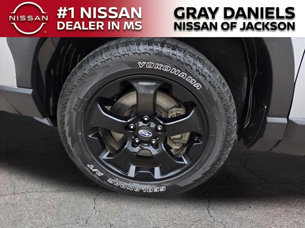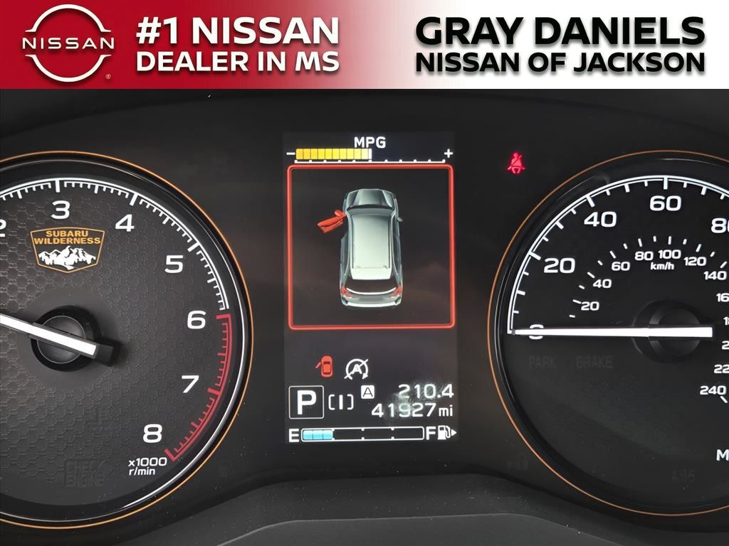 4-Wheel Disc Brakes, 4.11 Axle Ratio, 6 Speakers, ABS brakes, Air Conditioning, Alloy wheels, AM/FM radio: SiriusXM, Anti-whiplash front head restraints, Audio System & Navigation & Power Rr Gate, Auto High-beam Headlights, Auto-Dimming Exterior Mirror w/Approach Lighting, Auto-Dimming Mirror w/Compass & HomeLink, Automatic temperature control, Brake assist, Bumpers: body-color, Cargo Sidewall Protector, CD player, Driver door bin, Driver vanity mirror, Dual front impact airbags, Dual front side impact airbags, Electronic Stability Control, Emergency communication system: STARLINK Safety and Security (Subscription Required), Exterior Parking Camera Rear, Four wheel independent suspension, Front anti-roll bar, Front Bucket Seats, Front Center Armrest, Front dual zone A/C, Front fog lights, Front reading lights, Fully automatic headlights, harman/kardon 576W Amp & Speaker System, Heated door mirrors, Heated Front Bucket Seats, Heated front seats, Ice Silver Metallic Body Side Molding, Illuminated entry, Knee airbag, Leather Shift Knob, Low tire pressure warning, Navigation System, Occupant sensing airbag, Outside temperature display, Overhead airbag, Overhead console, Panic alarm, Passenger door bin, Passenger vanity mirror, Power door mirrors, Power driver seat, Power moonroof: Panoramic, Power Rear Gate, Power steering, Power windows, Radio data system, Radio: Subaru Starlink 8.0" Multimedia Nav System, Radio: Subaru Starlink 8.0" Multimedia Plus System, Rear anti-roll bar, Rear Bumper Cover, Rear seat center armrest, Rear window defroster, Rear window wiper, Remote keyless entry, Roof rack: rails only, Security system, Speed control, Speed-sensing steering, Split folding rear seat, Spoiler, STARLINK/Apple CarPlay/Android Auto, Steering wheel mounted audio controls, Tachometer, Telescoping steering wheel, Textured StarTex Upholstery, Tilt steering wheel, Traction control, Trip computer, Turn signal indicator mirrors, Variably intermittent wipers, Wheels: 17" x 7.0J Matte Black Machine Finish Alloy, Wilderness Door Scuff Protector, Wilderness Rear Seatback Protector, Wilderness Splash Guards.